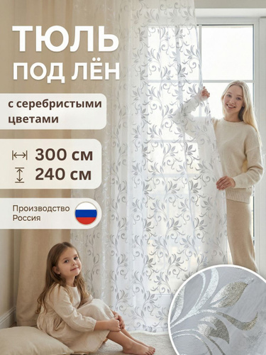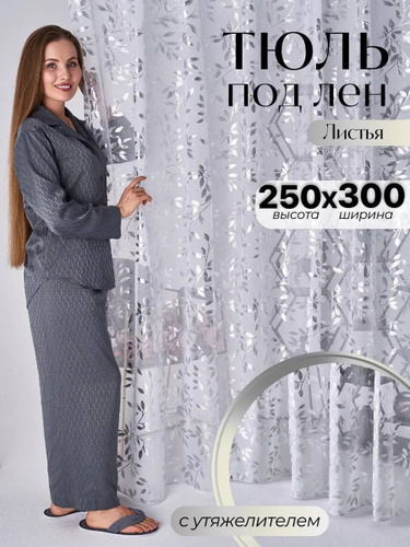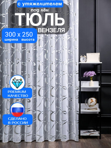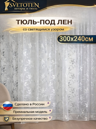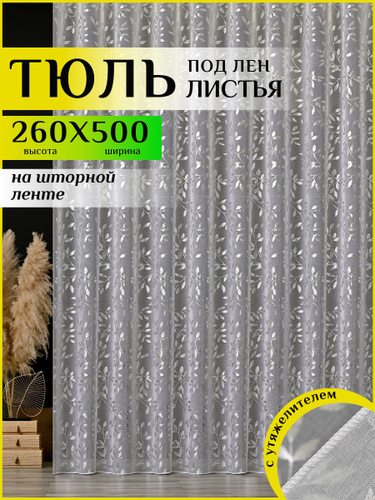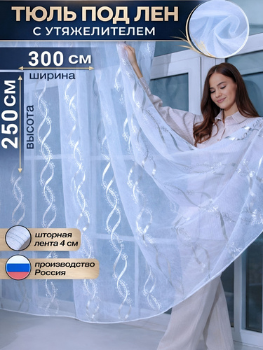 Тюль под лен вензеля 300х250 в гостиную и спальню