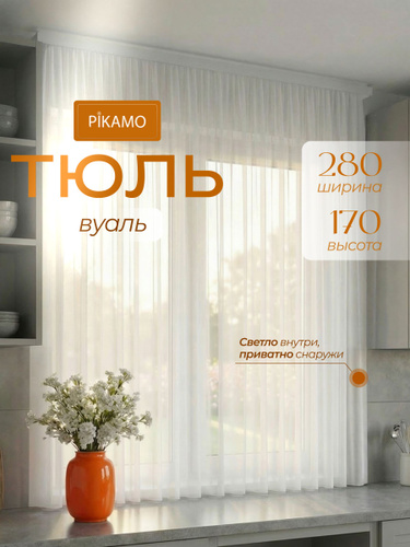 Тюль PIKAMO однотонная из вуали, 280 x 170 цвет: белый в гостиную, в спальню, для кухни, в детскую, занавески на окна, гардина