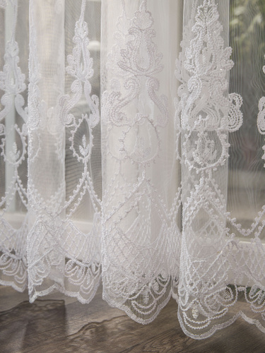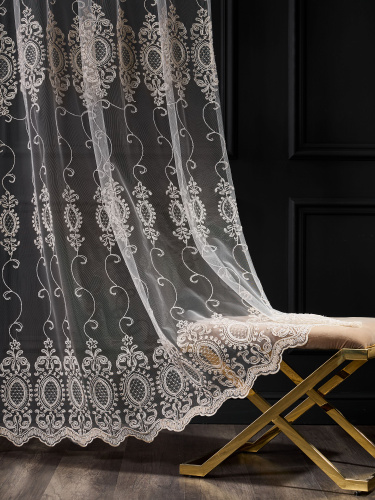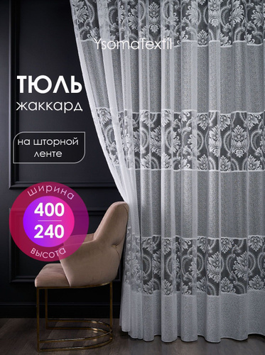 Тюль жаккардовый 400х240 см с вышитым узором в спальню и гостиную, штора с вышивкой для кухни 4 м