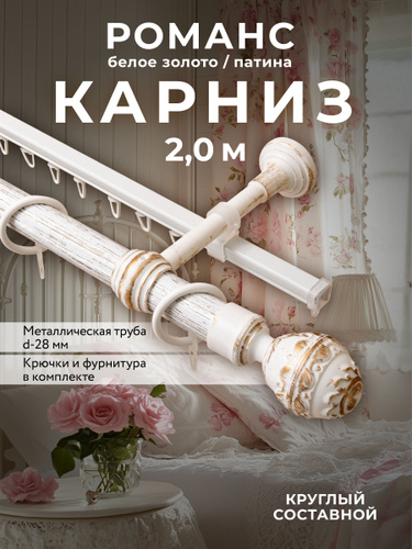 Карниз для штор и гардин 200 см белое золото, составной металлический.