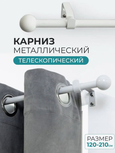 Настенный карниз для штор раздвижной телескопический от 120 до 210см Белый Круглый гардина однорядная белая металлическая для кухни, спальни, гостиной, детской