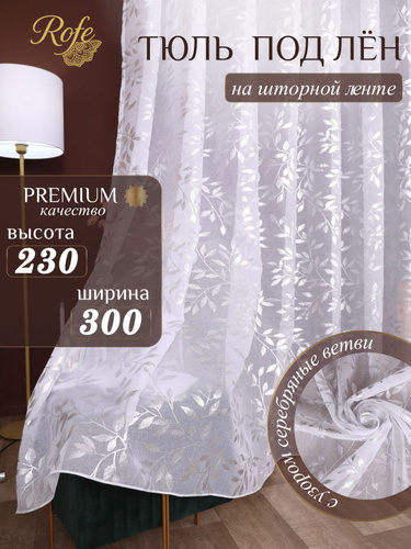 Rofe Тюль 300x250 см крепление Лента, белый, серебристый