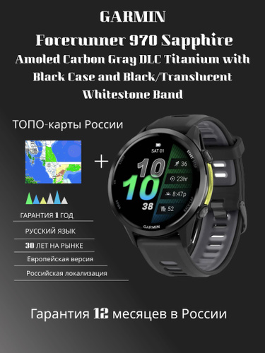 Умные часы Garmin Forerunner 970 SapphireCarbon Gray DLC Titanium with Black Case and Black/Translucent Whitestone Band (010-02969-10) Гарантия 12 месяцев