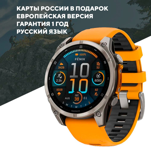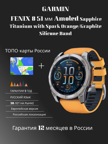 Умные часы Garmin Fenix 8 Amoled Sapphire 51 mm titanium spark orange (010-02905-11)