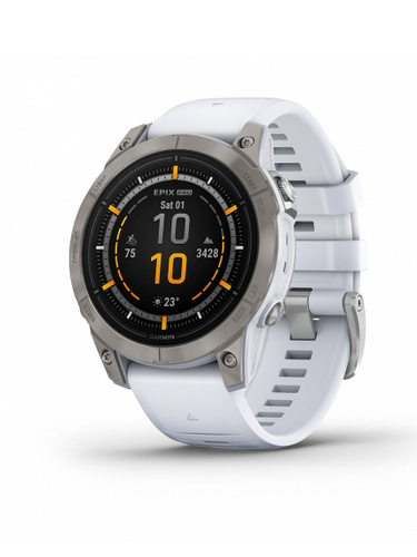 Умные часы Garmin Epix PRO (Gen 2) Sapphire Edition 51 мм, титановый белый, DLC, белый силиконовый ремешок