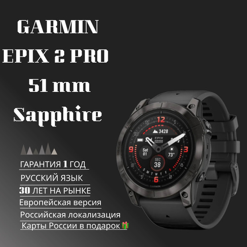 Умные часы Garmin Epix Pro (Gen 2) Sapphire Edition 51 мм, титановый угольно-серый, DLC, черный силиконовый ремешок (010-02804-01)