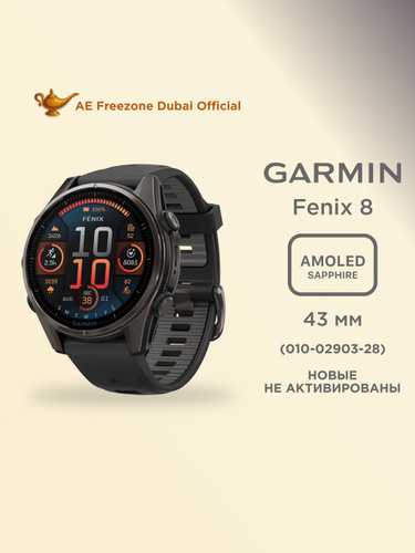 Garmin Смарт-часы fenix 8 AMOLED Sapphire, 43mm, Carbon Gray DLC Titanium with Black/Pebble Gray