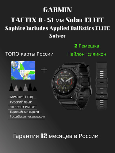Умные часы Garmin Tactix 8 51 mm solar sapphire Elite Includes Applied Ballistics Elite Solver (010-03407-11) 2 ремешка в комплекте