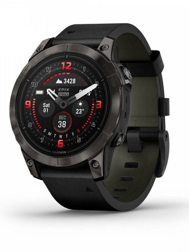 Garmin Epix Pro 2 Sapphire Carbon 47 мм + черный кожаный браслет, умные часы (010-02803-30)