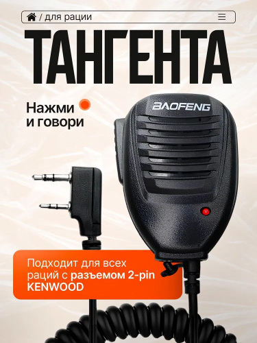 Тангента для рации Baofeng, Kenwood, Motorola и др.