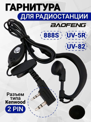 Гарнитура для рации с 2-контактным разъемом K-plug и односторонним микрофоном