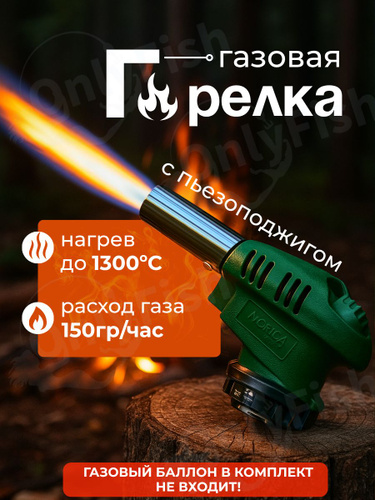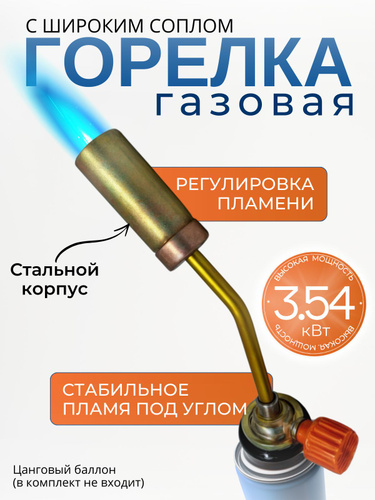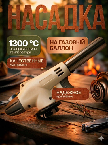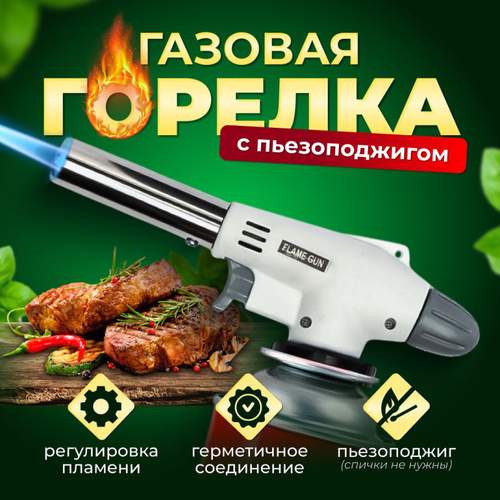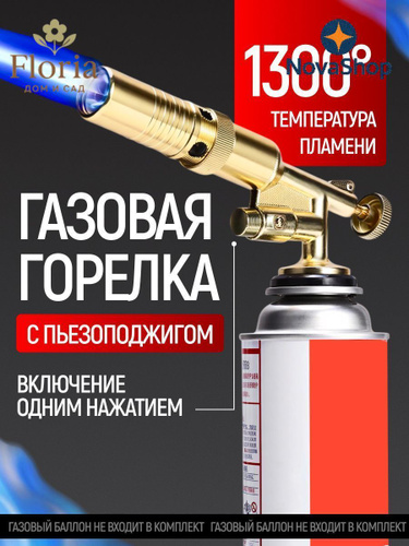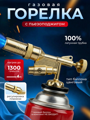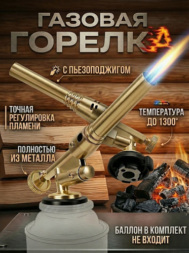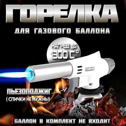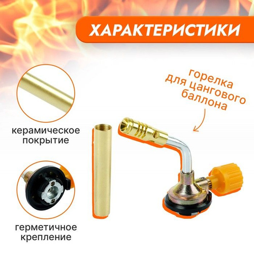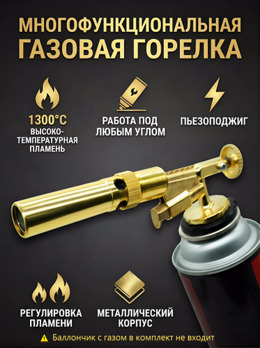 Горелка газовая с пьезоподжигом и с регулировкой размера пламени, насадка на газовый баллон