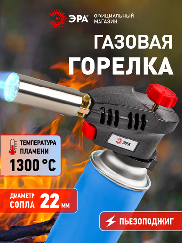 Горелка газовая ЭРА GB-04P с пьезоподжигом туристическая портативная для розжига дров, костра, камина / Горелка насадка на газовый баллончик с регулировкой пламени 1300 С