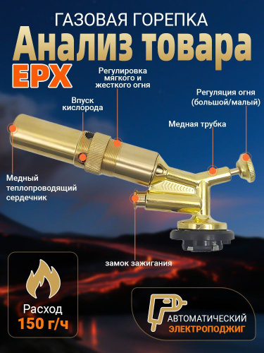 Газовая горелка с пьезоподжигом и регулировкой пламени Удлиненная медная труба, отсутствие утечки воздуха