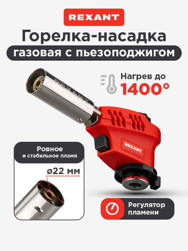 Газовая горелка с пьезоподжигом GT-20, для плавки, сварки и розжига REXANT
