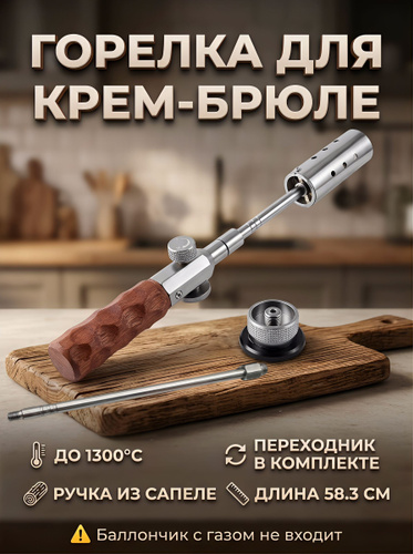 Горелка газовая универсальная 58.3см / Сапеле рукоятка / Ручной розжиг / Для крем-брюле и розжига