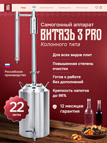 Самогонный аппарат Витязь 3 Pro колонного типа 22 литров