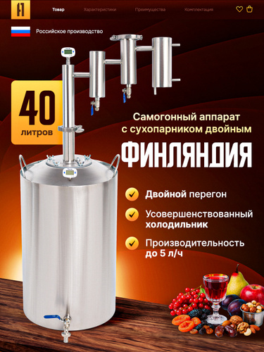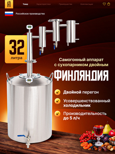 Самогонный аппарат с сухопарником двойным Финляндия Экстра 2, 32л/ Дистиллятор с двумя сухопарниками