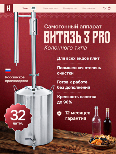 Самогонный аппарат колонного типа Витязь 3 Pro 32л / дистиллятор