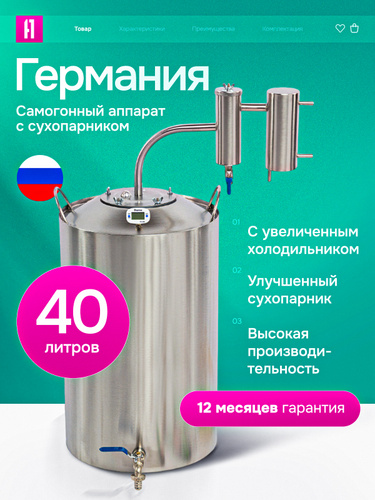 Самогонный аппарат Германия 40 литров с сухопарником / Дистиллятор для дома