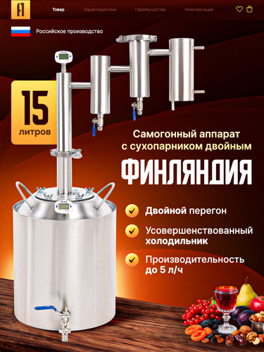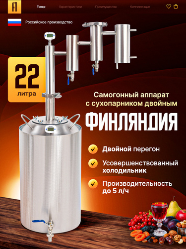 Самогонный аппарат с сухопарником двойным Финляндия Экстра 2, 22 л/ Дистиллятор с двумя сухопарниками