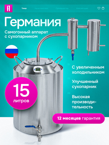 Самогонный аппарат Германия 15 литров с сухопарником / Дистиллятор для дома