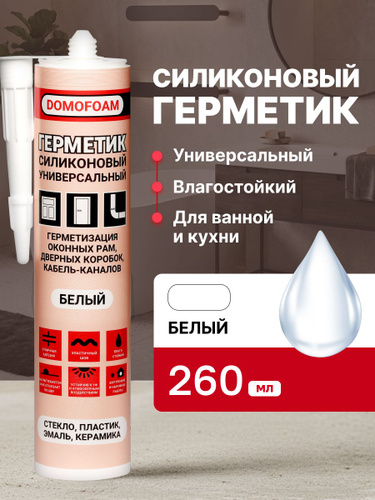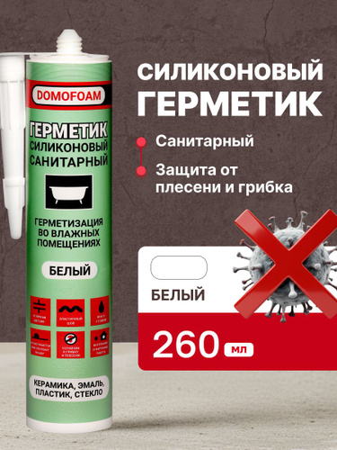 Герметик силиконовый для ванной, 260мл санитарный DOMOFOAM, белый (РОССИЯ)