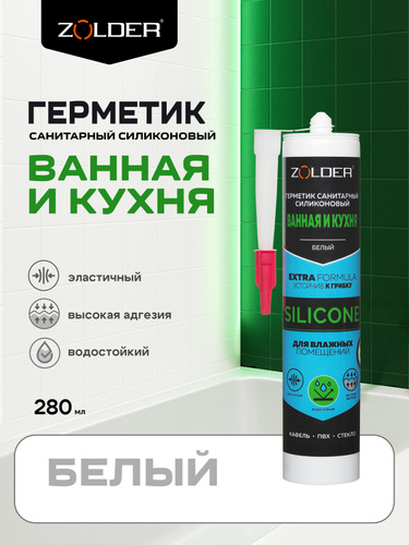 Герметик ZOLDER силиконовый санитарный БЕЛЫЙ для ванной и кухни 280мл