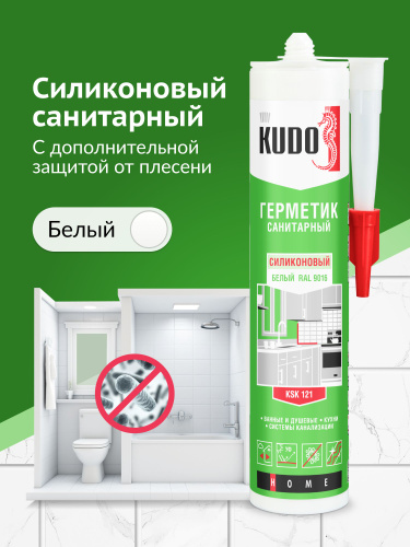 Герметик силиконовый санитарный KUDO "KSK 121", для ванной и кухни, 280 мл, белый
