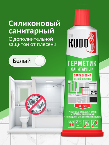Герметик силиконовый санитарный KUDO "KST 121", для ванной и кухни, 85 мл, белый