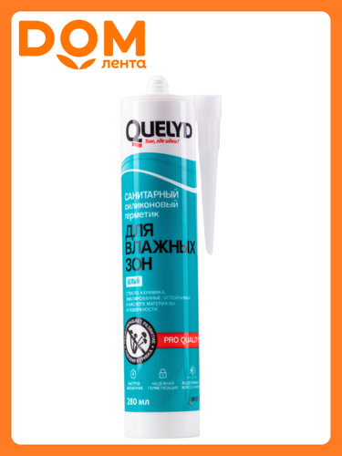 Герметик Quelyd силиконовый санитарный для влажных зон белый, 280 мл.