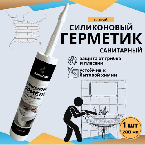 Герметик силиконовый санитарный белый. АБСОЛЮТ 1шт / герметик влагостойкий для ванной /