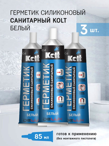 Герметик Kolt в тюбике силиконовый санитарный белый, 3 шт.