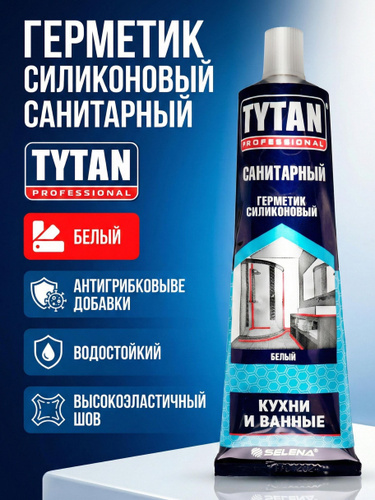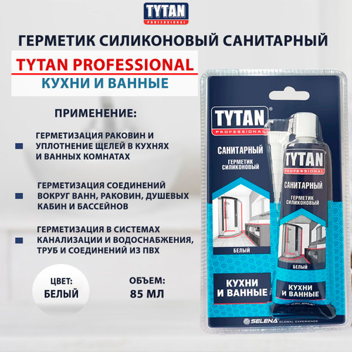 Герметик Силиконовый Санитарный TYTAN Professional БЕЛЫЙ 85 мл, для ванной и кухни, ТИТАН универсальный
