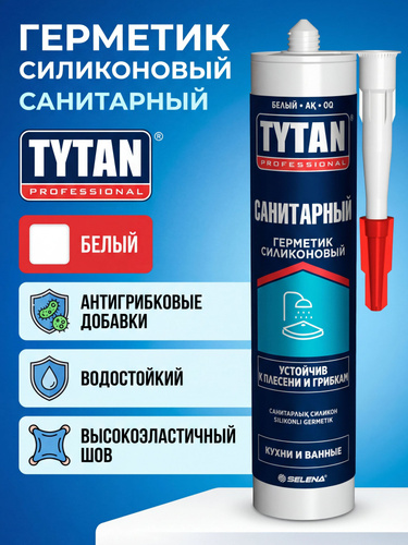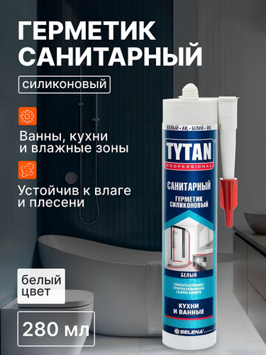 Герметик Силиконовый Санитарный TYTAN Professional БЕЛЫЙ 280 мл, для ванной и кухни, ТИТАН универсальный