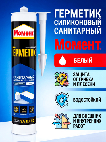 Герметик Силиконовый Санитарный Момент 280 мл БЕЛЫЙ для ванной и кухни водостойкий с добавкой против плесени