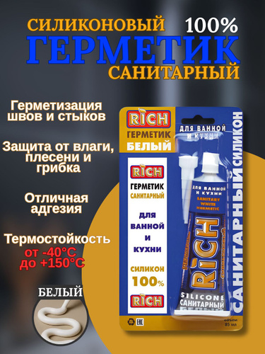 Герметик силиконовый санитарный RICH белый для ванной и кухни 280 мл