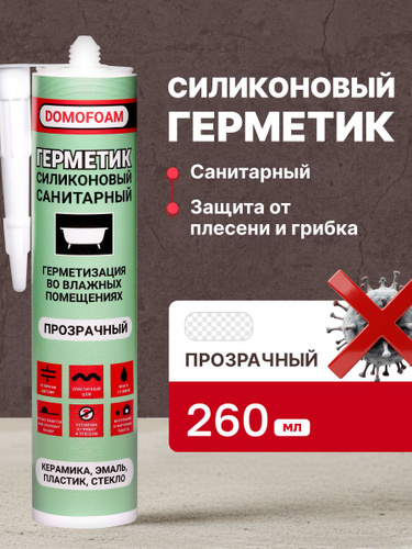 Герметик санитарный силиконовый для ванной прозрачный, 260мл, DOMOFOAM (РОССИЯ)