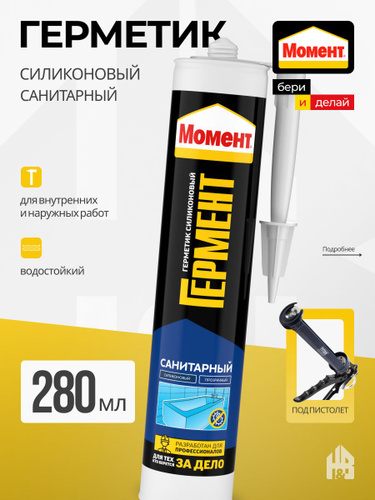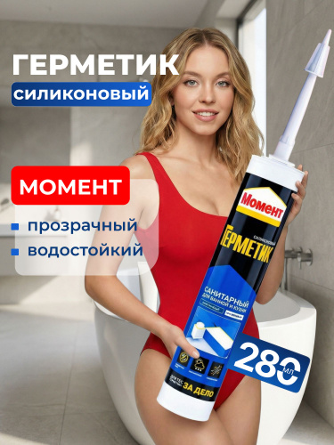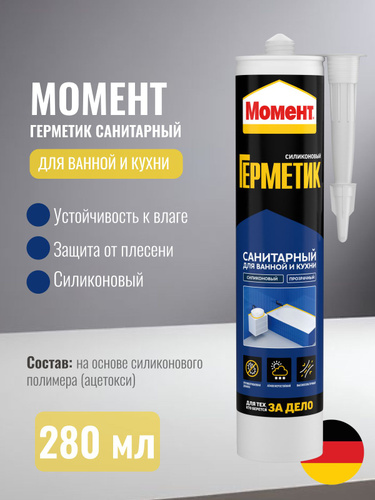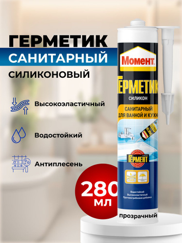 Герметик МОМЕНТ ГЕРМЕНТ силиконовый Санитарный прозрачный, 280мл