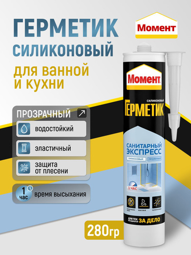 Герметик для ванной ПРОЗРАЧНЫЙ силиконовый Экспресс МОМЕНТ, 280 мл