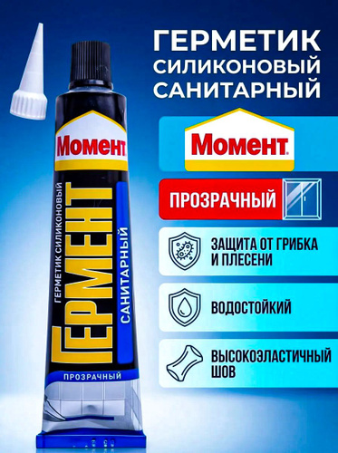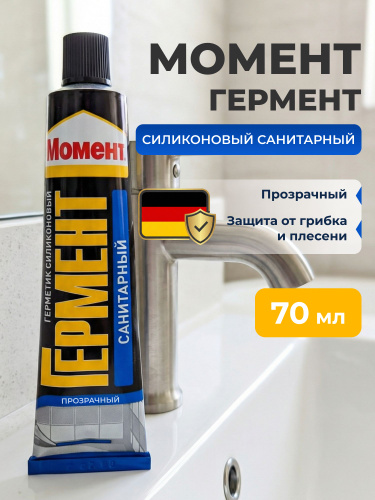 Герметик Силиконовый Санитарный Момент Гермент ПРОЗРАЧНЫЙ для ванной и кухни 70 мл водостойкий с добавкой против плесени