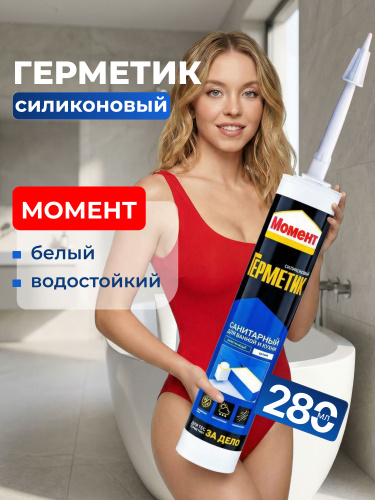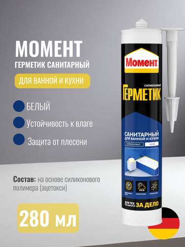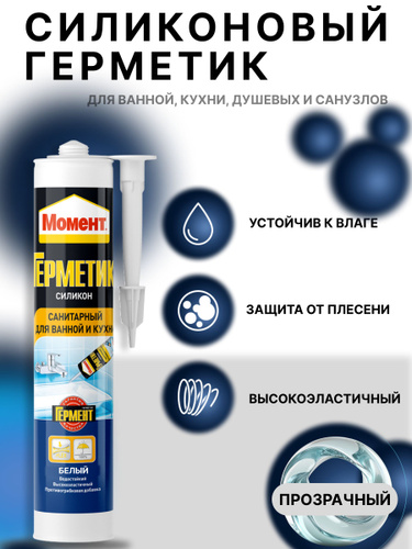 Силиконовый санитарный герметик для ванной и кухни Момент белый 280 мл Б0018852