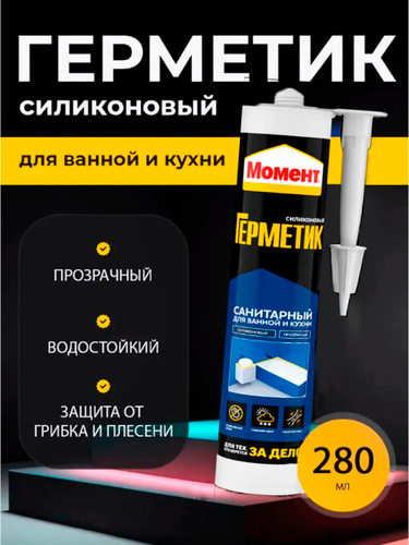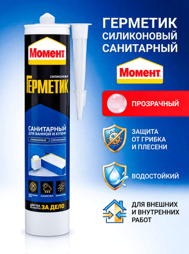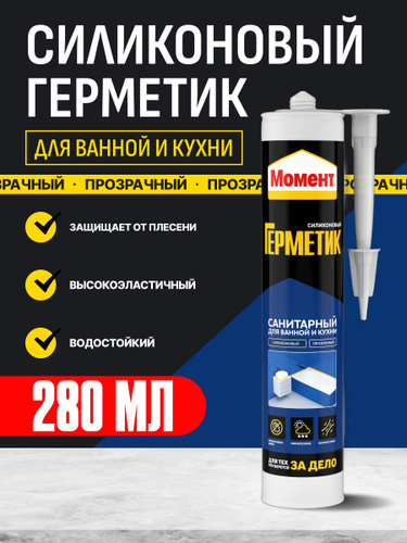 Герметик силиконовый санитарный для ванной и кухни Момент Прозрачный, 280 мл