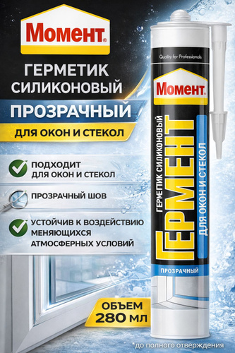 Герметик Силиконовый Для Окон и Стекла Момент Гермент 280 мл Прозрачный Стекольный