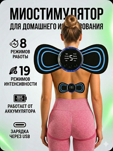 Мини Массажер, миостимулятор-тренажер для шеи и плеч, спины, рук и ног, пяток, для пресса, живота и мышц, антицеллюлитный/ USB мини - массажер для тела бабочка