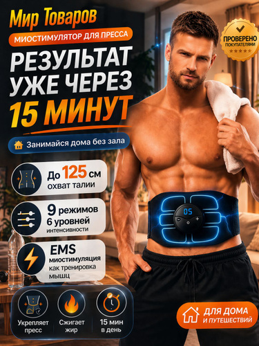 Миостимулятор для пресса, беспроводной массажер/EMS - технология для тренировок/Пояс для похудения