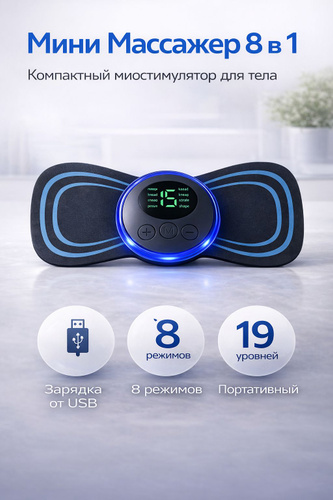 Массажер для тела, миостимулятор-тренажер для шеи, плеч, спины, рук, ног, пяток, пресса и мышц живота, с антицеллюлитной функцией.