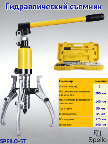 Гидравлический съемник YL-5T 5 тонн (усилие), для снятия подшипников, шестерен, шкивов