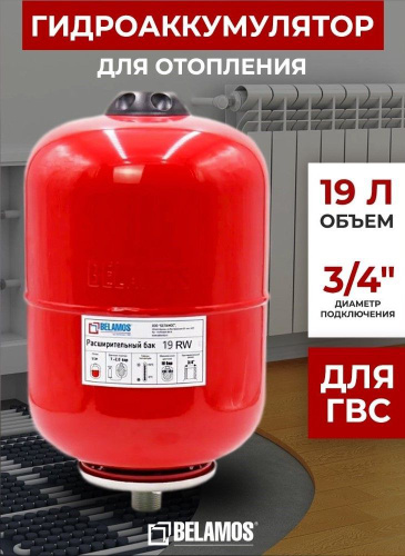 Гидроаккумулятор 19 литров для отопления / расширительный бак (экспанзомат) вертикальный 3/4" Belamos (Беламос) красный 19RW