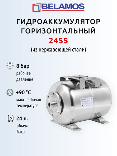 Гидроаккумулятор Беламос SS - 24 л. (горизонтальный, нержавеющая сталь)